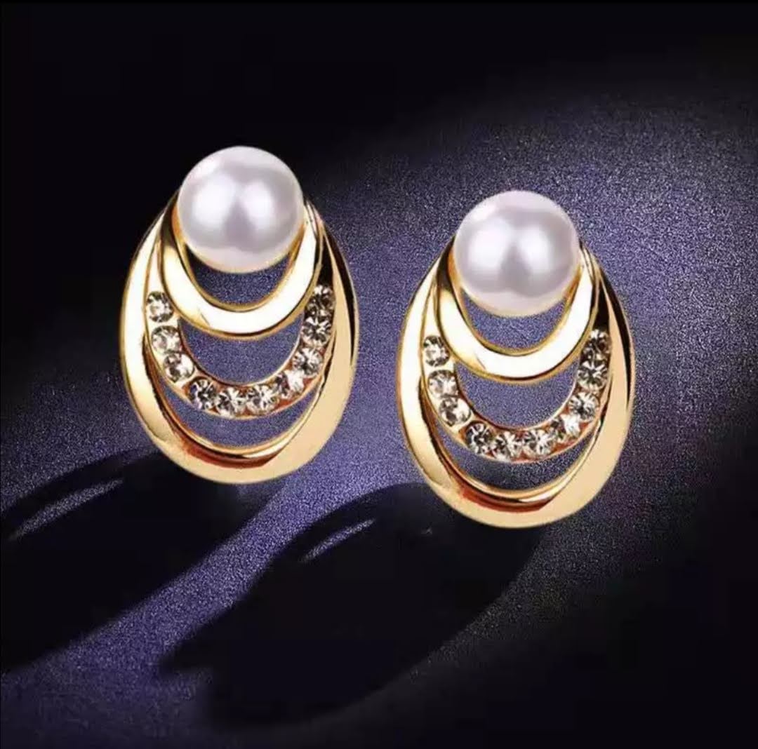Velmi krásné jemné a decentní náušnice tři spojené kroužky s perličkou ve zlaté barvě.