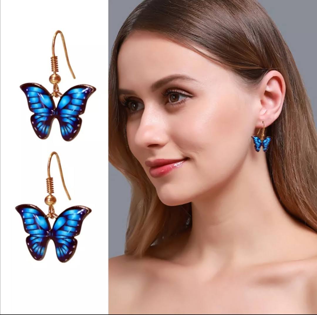 Krásné jemné náušnice modrý motýl doplní letní šaty o zajímavý prvek.