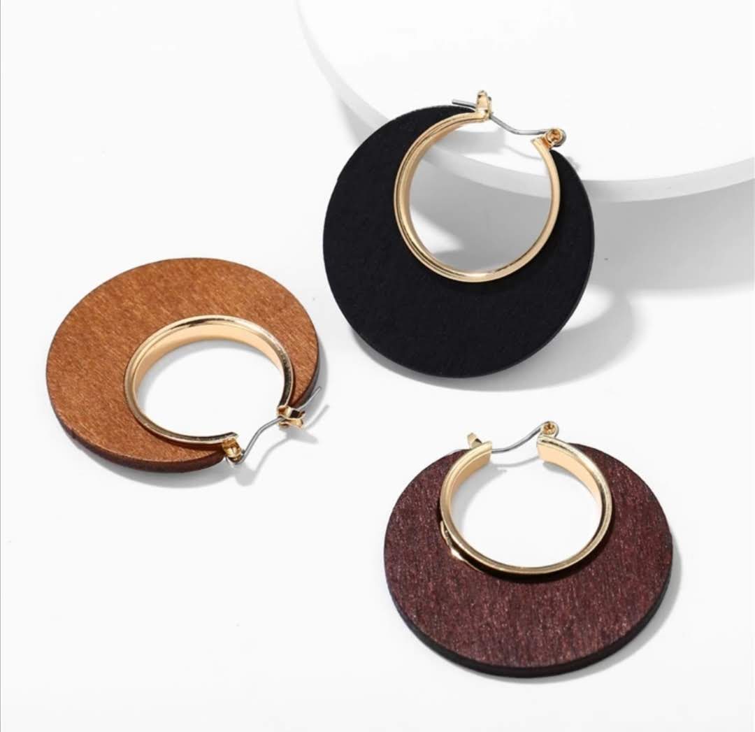 Tyto krásné dámské přírodní kruhy nabízíme ve třech variantách : přírodní , mahagon, černé. Materiál : dřevo a obecný kov