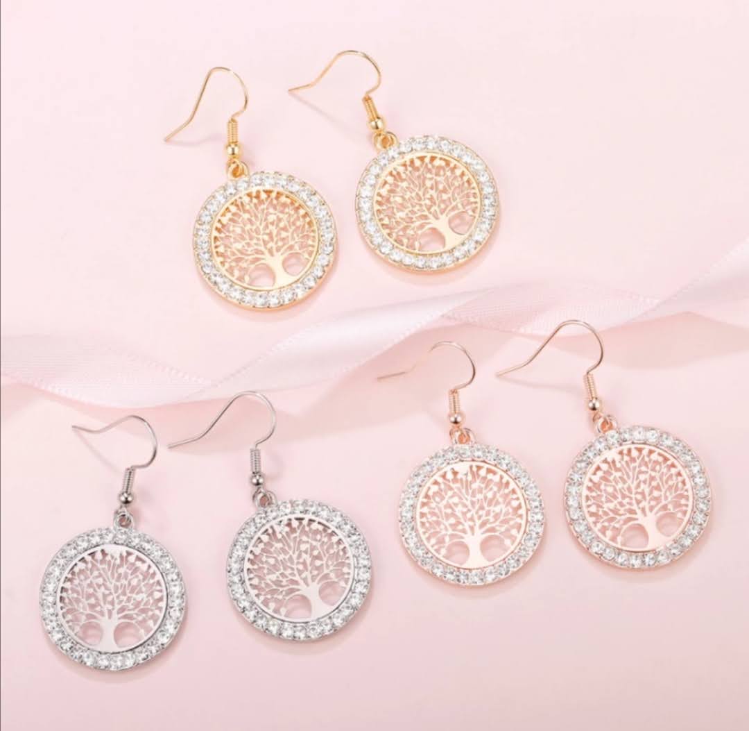 Velmi krásné originální náušnice strom života vykládané jemnými kamínky nabízíme ve třech variantách: stříbrná, rose gold, zlatá