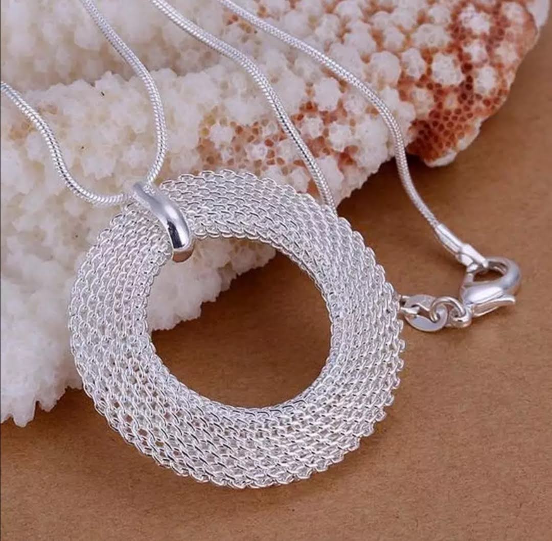 Krásný postříbřený řetízek (925) 46 cm s přívěskem kruh.