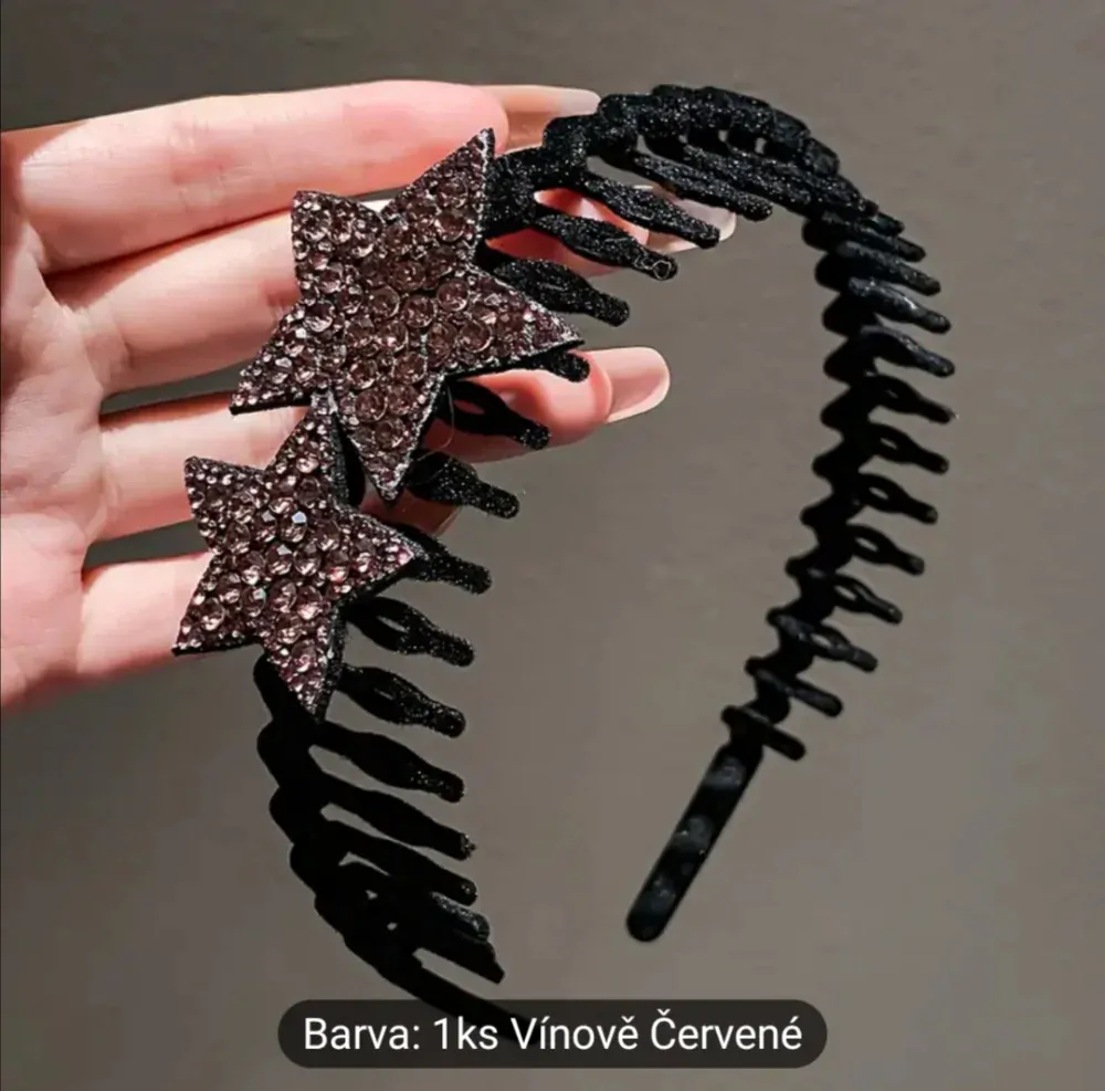 Krásná černá vlasová čelenka s hřebenem a vínovou hvězdou.