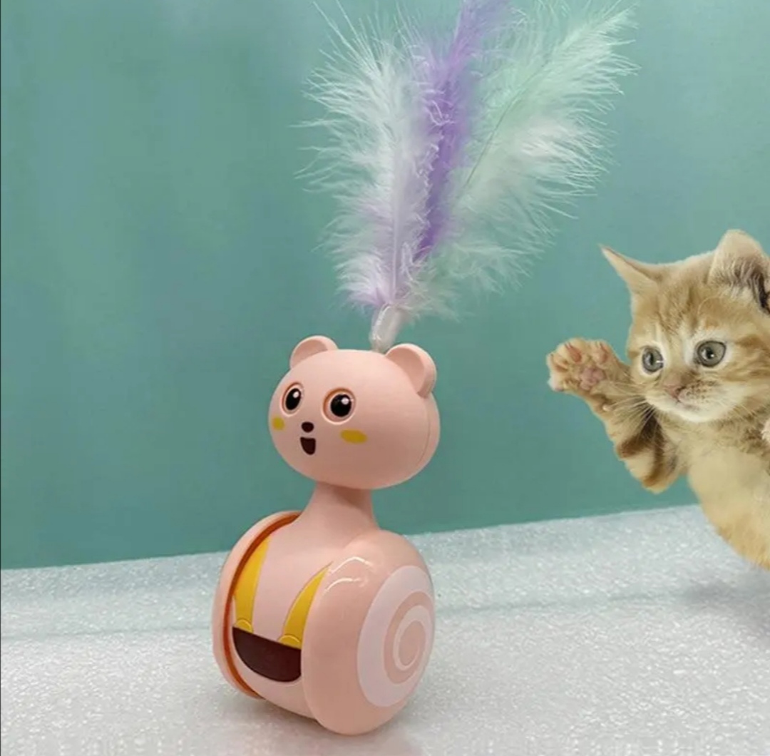 Díky kolečkům a stabilní těžší základně reaguje na dotek tlapky. Nejen že jezdí, ale kýve se ze strany na stranu, koulí očima . Hlava hračky je ještě doplněna o přírodní barevné peří , které láká ke hře a podporuje přirozené lovecké instinkty vaší kočky, zvídavost a radost z pohybu.