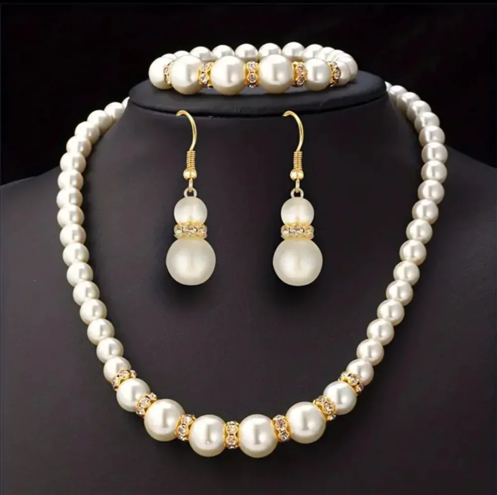 Dopřejte si luxus s kompletní sadou šperků - náhrdelník, náramek a náušnice, která v sobě snoubí klasickou krásu perel a moderní třpyt zirkonů. Tato perlová sada představuje ztělesnění nadčasové noblesy a sofistikovaného stylu, navnavržená tak, aby rozzářila každou ženu při vyjímečných okamžicích i v každodenním životě.