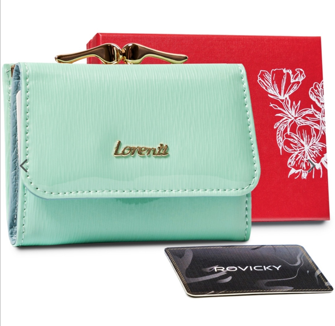 - Malá dámská kožená lakovaná peněženka Lorenti Mint s dárkovou krabičkou . Je navržena minimalisticky, ale přesto se do ní vejde co potřebujete.
