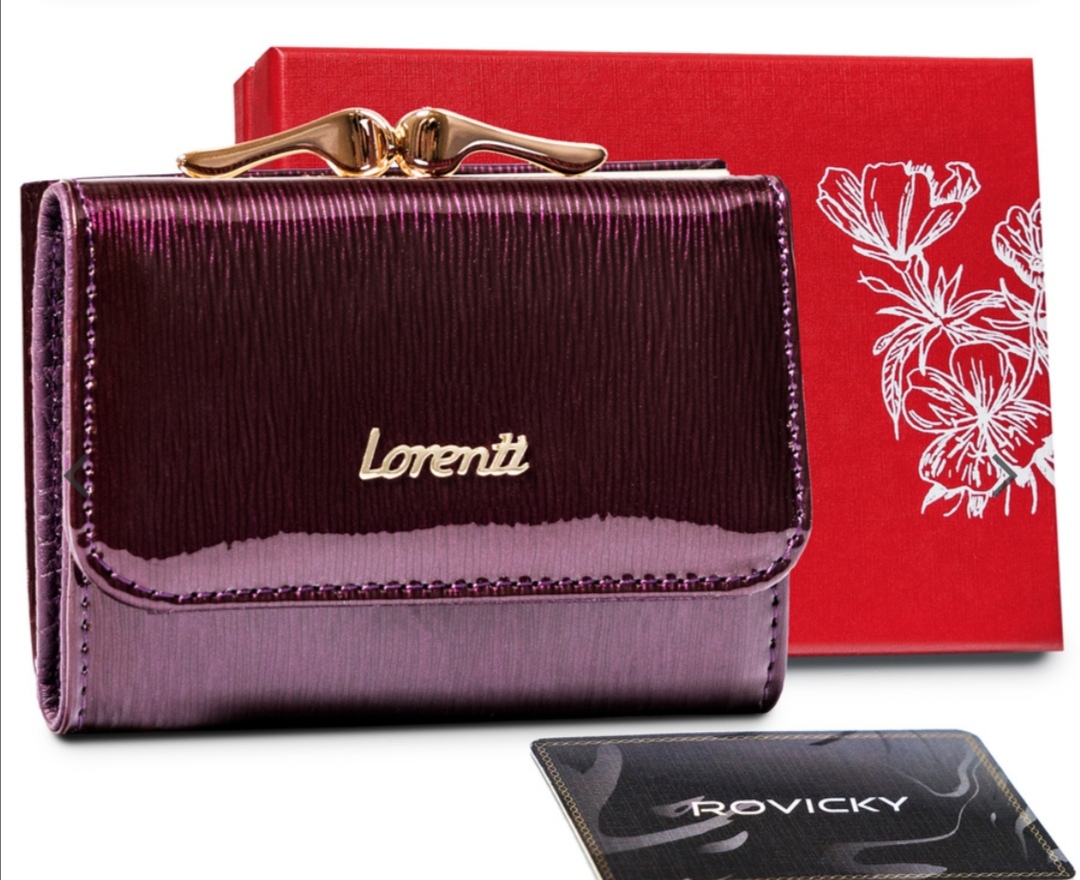 - Malá dámská kožená lakovaná peněženka ve fialové barvě v dárkové krabičce. Tato peněženka je navržena minimalisticky, ale přesto se do ní vejde vše co potřebujete. Je vyrobena z vysoce kvalitní přírodní hovězí kůže, pokryté lakem s vysokým leskem. Tyto peněženky se vyznačují nadprůměrnou odolností s velkým důrazem na nejvyšší kvalitu zpracování a design. Na přední straně peněženky najdete decentní logo Lorenti ve zlaté barvě. Uvnitř peněženky kvalitní logovaná výstelka, která chrání peněženku před opotřebením kartami.