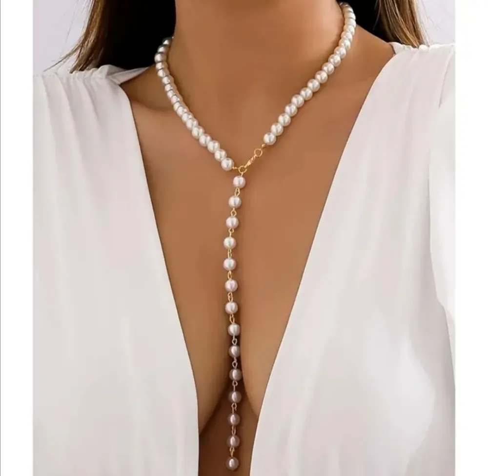 Nádherný perlový náhrdelník pro dokonalý out fit pro zaždou příležitost. Náhrdelník s umělými bílými perličkami a zlatými doplňky.