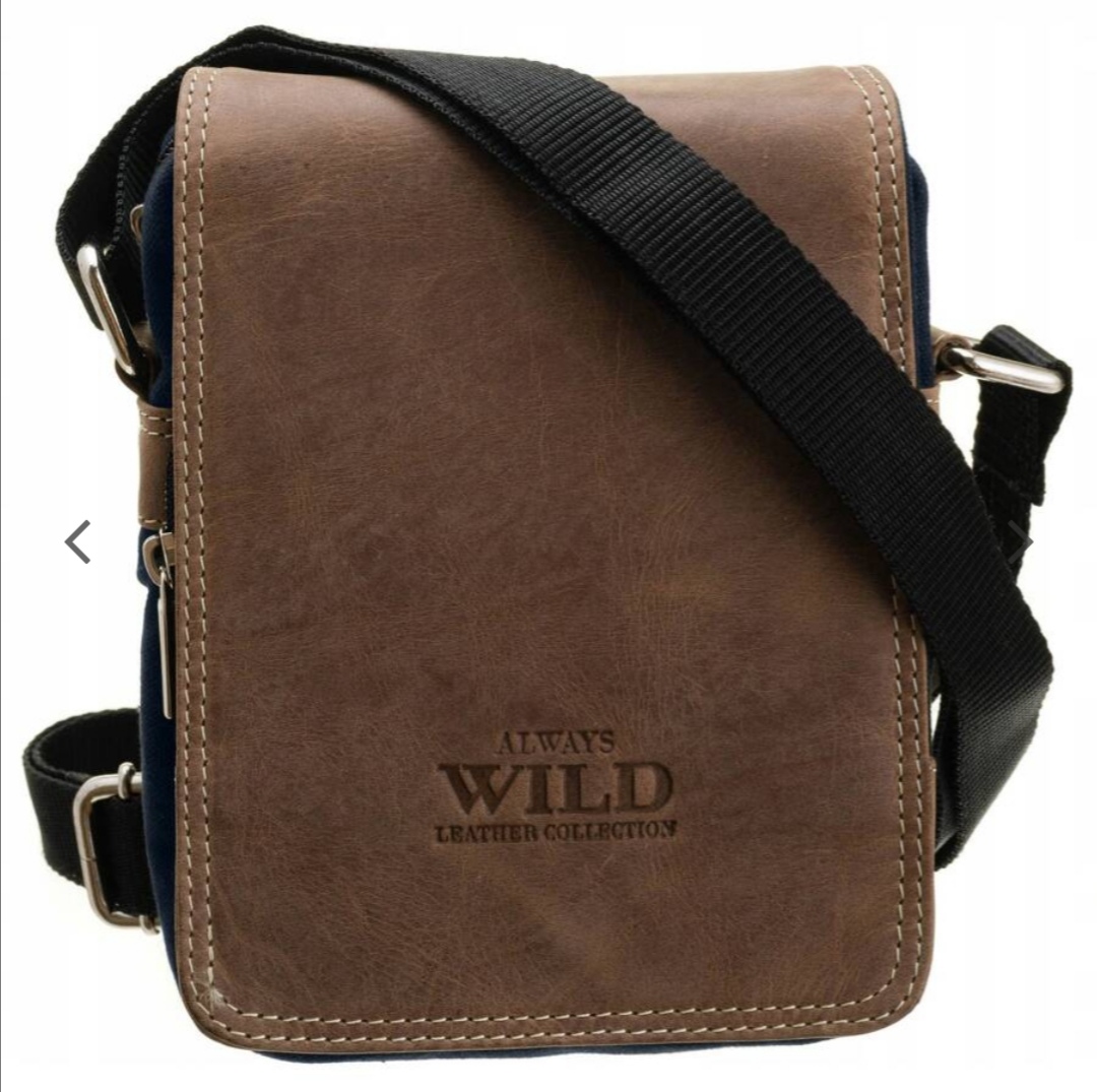 - Zajímavá kombinace pevného plátna a přírodní hladké hovězí kůže. Na přední straně najdete decentní logo Always Wild. Taška má jednu hlavní přihrádku s kvalitní podšívkou a menší kapsou na doklady, nebo mobil se zipem. Druhá větší uzavíratelná kapsa je hned pod klopou s pevným cvočkem.