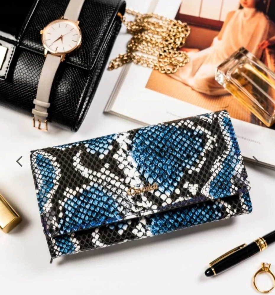 Prostorná dámská peněženka 4U Cavaldi hadí vzor modráskladem 2 ks549 Kč/ ks