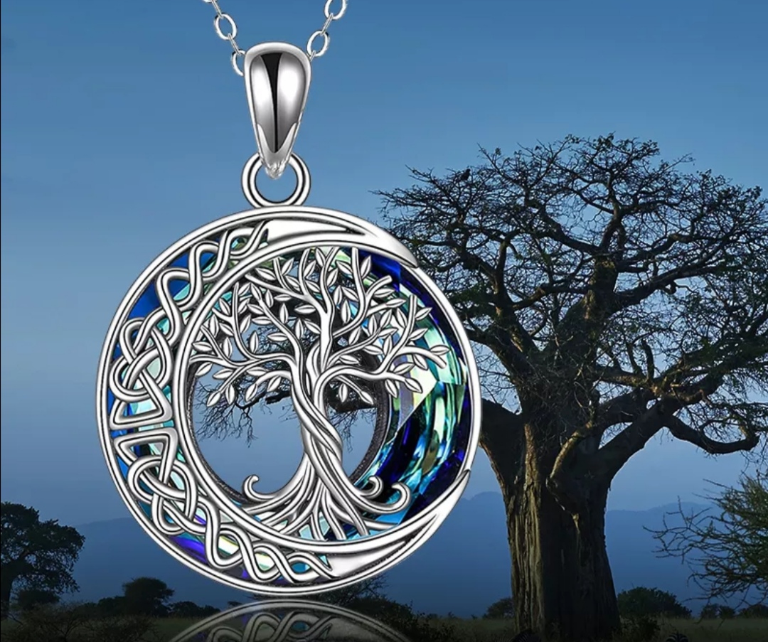 Velmi krásný řetízek 51cm s přívěskem strom života a modrým krystalem je opravdu krásným doplňkem k oblečení.