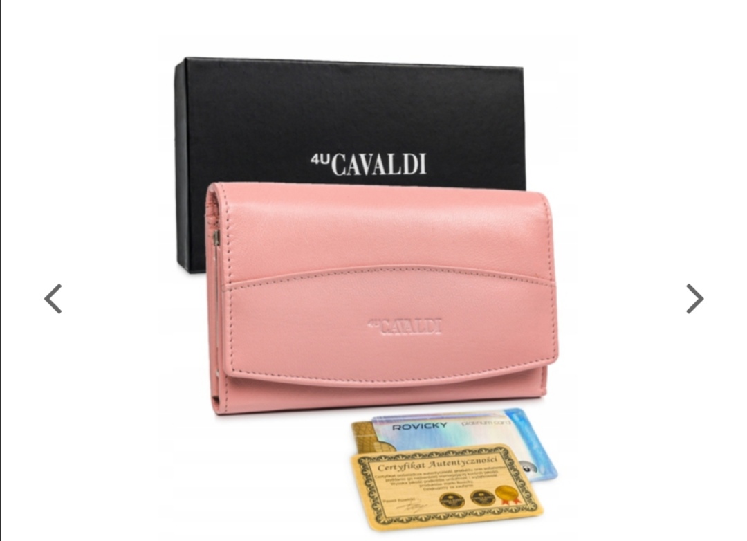 - Velká dámská rozkládací kožená peněženka Cavaldi lososová v dárkové krabičce.