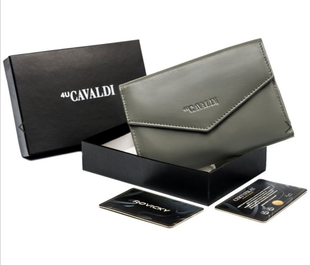 - Velká dámská kožená peněženka šedé psaníčko Cavaldi v dárkové krabičce . Peněženka z nejnovější kolekce Cavaldi je vyrobena z vysoce kvalitní přírodní hovězí kůže , lehce lesklé, ale nelakované. Uvnitř peněženky je speciální podšívka odolná proti opotřebení.