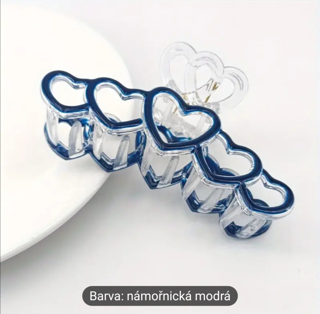 Velký skřipec do vlasů duté srdce modrýskladem 2 ks79 Kč/ ks