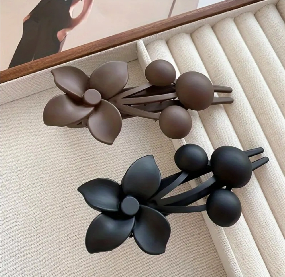 Krásný velký skřipec do vlasů květina ve dvou barevných variantách : hnědá, černá